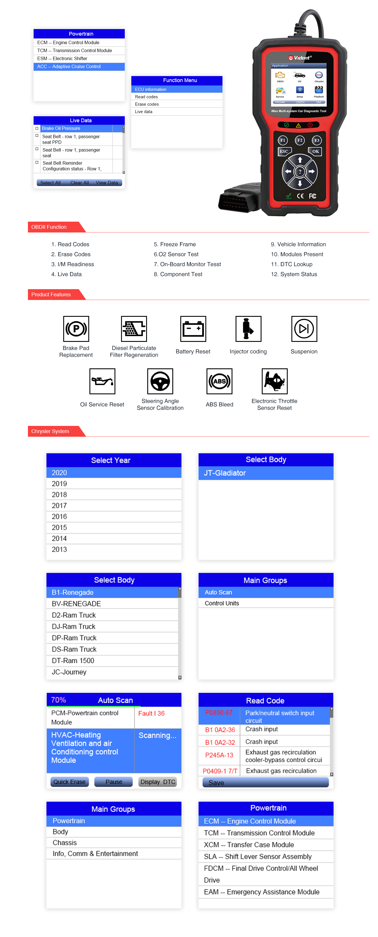 iMax4311 Багатосистемний діагностичний інструмент для автомобілів Chrysler